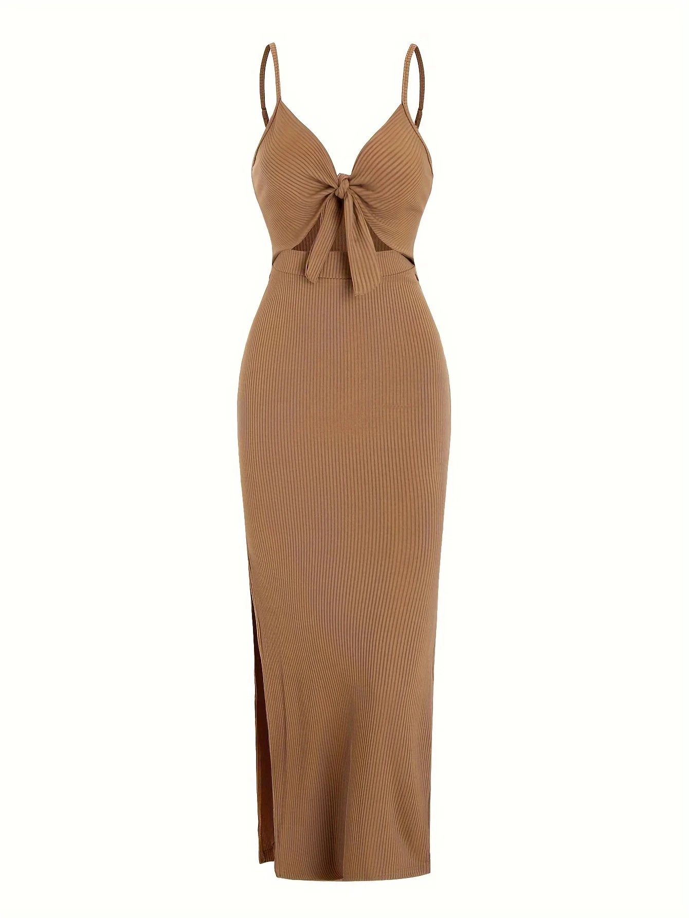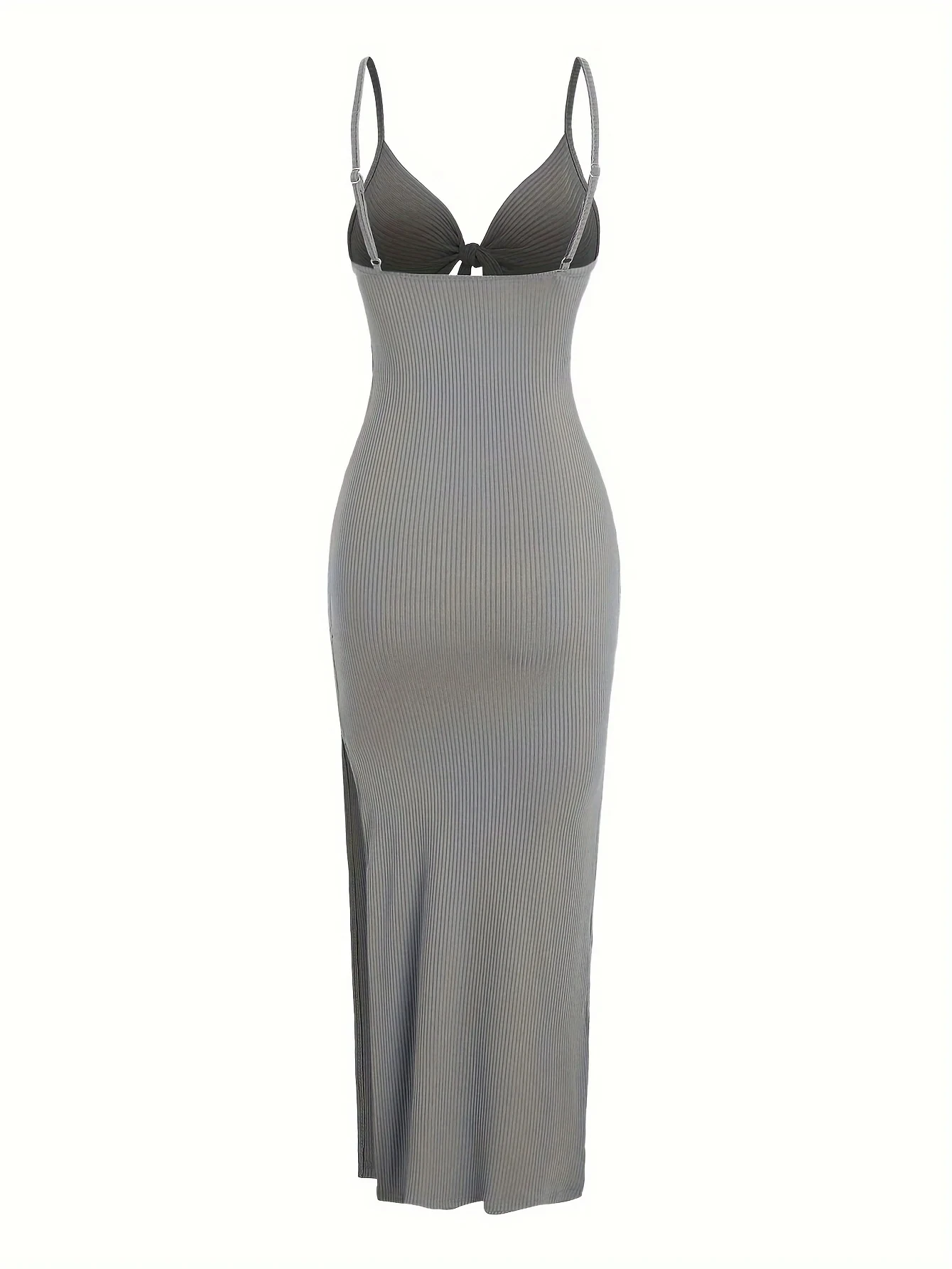Europe and America knit simple sleeveless suspender dress in spring and summer, leaking back and sexy long skirt with neck.
